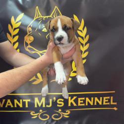 Търсите верен, енергичен и привързан домашен любимец? Вие сте на правилното място! Развъдник Savant MJs ви представя нашето ново котило "D" от Американски стафордширски териер, с висок международен произход! Нашите кученца са добре социализирани, весели и готови да станат членове на вашето семейство. С изложбен потенциал! Налични: 2 мъжки и 1 женско. Защо да изберете нашето котило? Здраве: Кученцата са редовно преглеждани от ветеринарен лекар, ваксинирани и обезпаразитени. Темперамент: Те са много мили и привързани, идеални за семейства с деца. Родители: Родителите са с отлични характеристики и доказано здрави. За всякаква допълнителна информация, свържете се с мен по Viber и WhatsApp: +38166100543 FB: Marko Jovanovic IG: Savant_mjs_kennel Обреновац, Сърбия