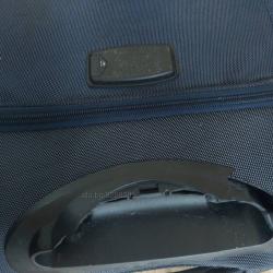 Много добър куфар, но има забележка: няма телескопичната дръжка и наоколо плпстикът е изчупен - това не пречи за употреба. Другото е наред: колелата, циповете, горната и страничната дръжки. Вижте снимките. Куфарът можно да теглите с колен или въже. Доставка Спиди, Еконт или лично. Разберете лично тарифите за доставка!!!