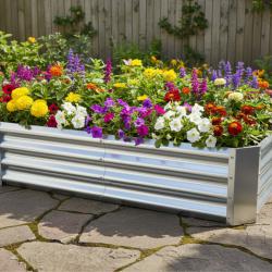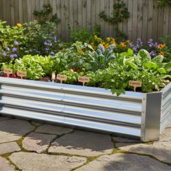 Технически характеристики на Леха за зеленчуци и цветя метална - поцинкована Кратък и ясен списък с технически данни, които да ви помогнат при избор: Тип: Зеленчукова и цветна леха Форма: Правоъгълна Размери: 240 × 120 × 30 см Материал: Поцинкована стомана Покритие: Прахово боядисано Цвят: Поцинкован (метален нюанс) Приложение: Градина, двор, обществени кътове за отдих Монтаж: Бърз и лесен, включени основни крепежни елементи