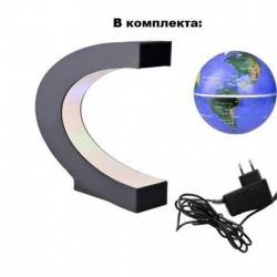 Левитиращ глобус, LED осветление/ Красив и иновативен дизайн. Магнитна С-образна поставка, с красиви лед светлини. Основата й е в черен цвят и има страхотно осветление от вътрешната си страна.. Глобуса е малък на размери, изобразяващ картата на света. Тази страхотна декорация е една красива и иновативна система, която пасва на всеки дом. /Функции: Завърта се, LED осветление; Материал: Пластмаса; Цвят: Многоцветен; Подходящо за: Бюро, Шкаф; Красиви и ярки цветове; Зарядно устройство: 5V/1A; Стои самостоятелно във въздуха; Развива умения и качества в детето; Размер: 113 x 171; Диаметър на глобуса: 10 см.