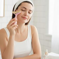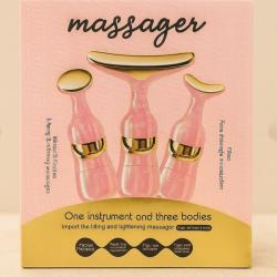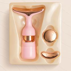 3-в-1 масажорът е решение за уморена, отпусната кожа, подпухнали очи и фини бръчки. Той комбинира високочестотна вибрация и микроток, за да активира колагена, да стегне контура и да подобри усвояването на серуми. Подходящ е за лице, шия и околоочна зона, като намалява подпухналостта и връща свежия вид още след първите процедури. Уредът разполага с 3 сменяеми масажни глави, ергономичен „dolphin tail“ дизайн и метални масажни повърхности. Компактен, лек и удобен за ежедневна грижа. Работи с 1×AA батерия. Предлага ефект „SPA у дома“ – стягане, изглаждане и дълбока хидратация за всички типове кожа.