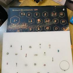 24 изненади – гривни, висулки, обеци и пръстени, подредени в стилна кутия. Премиум дизайн – всяко бижу е изработено с внимание към детайла и нежни акценти от кристали. Перфектен подарък – идеален както за себе си, така и за любим човек, който обича малките жестове. Готов за подаряване – идва в луксозна опаковка с празничен дизайн и златисти детайли. Година на издание: 2019 Тип продукт: Адвент календар с бижута Брой елементи: 24 отделни изненади Материал: Метална сплав с покритие, декоративни кристали Опаковка: Подаръчна кутия с празничен дизайн Размер на кутията: приблизително 40 × 30 см