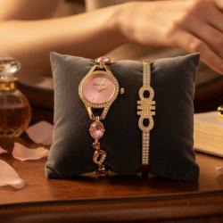 Луксозен дамски сет часовник с кристали гривна в подаръчна опаков