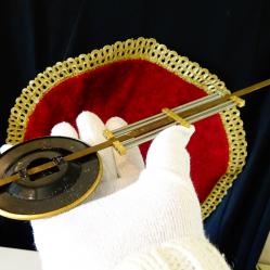 Старо бронзово махало за стенен часовник. Дължина 26 см., диаметър 7 см., тегло 82 гр.