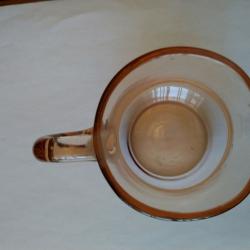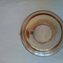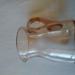 Малка стъклена кана. Произход България около 1975 г. Габаритни размери на каната 100*74*100 мм. Размери на гърлото 65*60*100 мм. Каната не е използвана.
