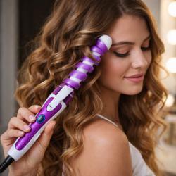 Технически характеристики на Маша за перфектни къдрици у дома или в салона Техническите данни дават ясна представа за възможностите на този уред: Материал: ABS Цвят: Лилав Напрежение: 110V-240V (универсално) Температура: до 210°C Автоматично навиване Време за загряване: 30 секунди Мощност: 35W Размери: обща дължина 30.5 cm (спирала 16 cm, дръжка 15 cm)