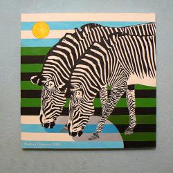 Картина със зебри. Маслена боя върху платно с размери 40 на 40 см. Рисувана е 2021 година. Художник мАРТгер.