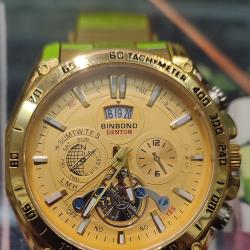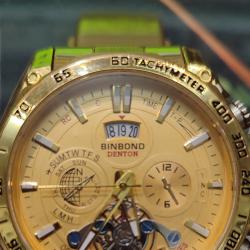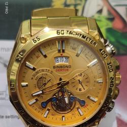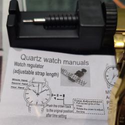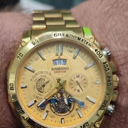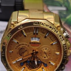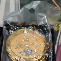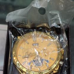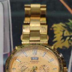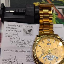 Елегантен часовник за мъже в златист цвят с батерия в отлично състояние.
