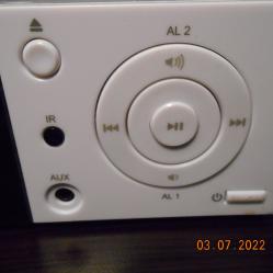 Радиочасовника работи без проблемно - диск - радио - вход Стерео говорители ляв и десен - странични PLL тунер с RDS Добра динамика и достатъчна мощост Стойка за монтаж под шкаф - Дистанционно няма