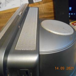 Системката е в доста добър външен вид Всичко по нея работи - диск с мр3 - радио - USB - вход Многоцветен дисплей - заден буфер Моторизиран преден панел /зацепва трудно но работи/ Мощоста е прилична 2 х 5 вата + 10 вата буфера