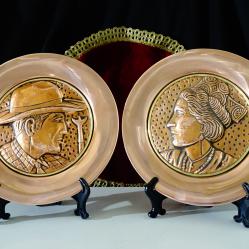 Медна чиния за стена, пано с портрет на каубой, лице, профил.