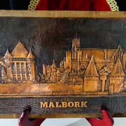 Старо медно пано, релефна медна картина с ръчно ковано релефно изображение на замъка Малборк, построен под формата на репост през 13 век от кръстоносците. Най-големият замък в света, включен в световното културно наследство на ЮНЕСКО. Размер 28 х 19 х 1.5 см., тегло 600 гр.