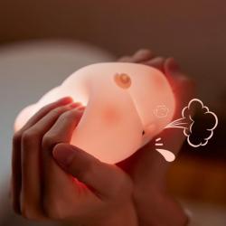 Продуктов клас: Нощна LED лампа Модел: K-1158 Тип: Touch Lamp (чрез докосване/пляскане) Номинално напрежение: DC 5V Номинална мощност: 1W Ток на зареждане: 200–600 mA Входен ток: DC 5V, 1A Капацитет на батерията: 1200 mAh Време на работа: до 6 часа Време за зареждане: 2–3 часа Захранване: Вградена акумулаторна батерия Порт за зареждане: USB Type-C Материал: ABS пластмаса, мек силикон Размери: 120 × 114 × 67.5 mm Цвят на светлината: Мека бяла LED