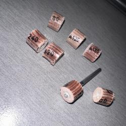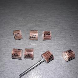 Мини ламелни шкурки 7бр всяка с различна едрота на посипката 80 / 120 / 180 / 240 / 320 / 400 / 600 плюс шпиндел с резба за лесно и бързо захващане на всяка Приблизителна височина на шкурките 9,7-10мм Приблизителна дебелина от 1,1 до 11,6мм Диаметър на опашката на шпиндела 3мм За шлифовалка, мини шлайф, дремел, dremel, мултишлайф, CNC, foredom, фреза, оберфреза