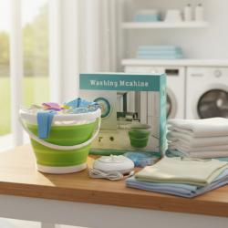 Капацитет: до 1 кг пране; Размер в разгънато състояние: височина 20 см, долна част – диаметър 13 см, горна част – диаметър 25 см; Размер на опаковката: 27 х 27 х 6 см; Захранване: USB кабел; Подходяща за: бельо, чорапи, тениски, детски дрехи; Не се препоръчва за дънки, палта и тежки материи;