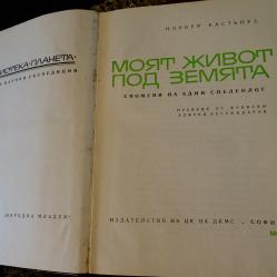 Стара книга от личната ми библиотека – Моят живот под земята. Автор Норбер Кастьоре. Издадена през 1967 година. Твърди корици с цветна обложка и множество снимки. Страници 406. В добро състояние.