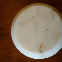 Мраморен пепелник. Произход неизвестен около 1990 г. Размери диаметър на основата ф100 мм., диаметър на най-широката част ф130 мм., диаметър на отвора ф84 мм., височина 38 мм, дълбочина на отвора 25 мм..Пепелникът е използван.