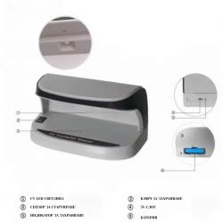 Тип: детектор за валута / детектор за банкноти (UV); Метод на откриване: UV LED лампа (1× UV LED); Скорост на откриване: 0.5 s/брой; Дисплей: LED; Захранване: 5V/2A; Батерия: вградена литиево-йонна презареждаема батерия (в комплекта има кабел за зареждане); Поддържан размер на банкнота: 50×110 до 90×190 мм; Сертификации / безопасност: CE, RoHS, FCC. Работи с всички валути, които имат стандартни защити като UV елементи, MG магнитна нишка, WM воден знак и micro-printing микротекст — това го прави универсален UV детектор за пари, когато ти минават евро, долари, паунди или левове.