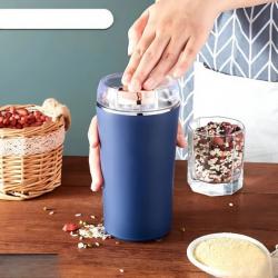 Продукт: Преносима многофункционална електрическа мелница; Материал / корпус: Неръждаема стомана (вътрешен съд), външен корпус с метален завършек; Размери: 16,5 × 9 × 7,8 см; Капацитет: 250 ml; Захранване: Кабелно захранване (работи от електрическата мрежа); Приложение: кафе на зърна, подправки, семена, билки, сушени съставки; Цвят: син; Гаранция: 12 месеца.