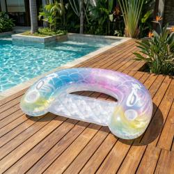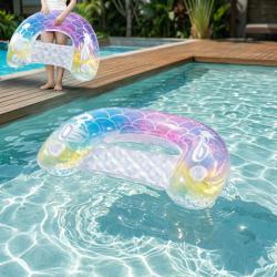 Технически характеристики на Надуваем матрак русалка 115x70 см с поставки за чаши – стилен и удобен за басейн и летен релакс Точни и полезни данни за продукта: Размери: 115 x 70 см — подходящ за възрастни и тийнейджъри, компактна форма за лесно управление. Материал: висококачествен PVC, устойчив на разкъсване и ултравиолетови лъчи. Капацитет на поставки: 2 вградени държача за чаши/конзерви. Цвят/Дизайн: дъгообразни люспи с бели акценти и перлен ефект. Употреба: подходящ за басейн, плаж, езеро и дворно ползване. Поддръжка: лесно изплакване с вода и бързо изсушаване преди прибиране.
