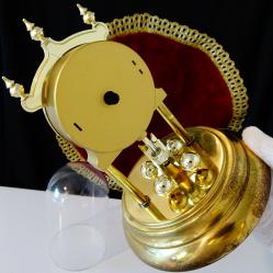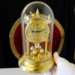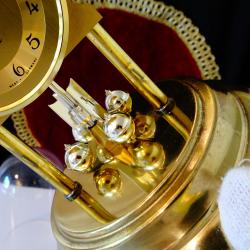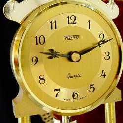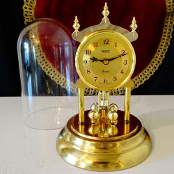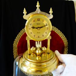 Западно Германски настолен часовник с купол и въртящи се сфери на световно известната марка Trenkle. Високо качествена изработка с корпус от позлатен бронз. Работи перфектно и точно, топчетата се въртят динамично. Тик-така свръх дискретно. Височина 18 см., диаметър на основата 11 см., диаметър на циферблата 6 см.