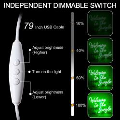 За стена, бар, дом, кухня, магазин, ресторант, сватба, рожден ден, парти, декорация, подарък... * * * Перфектна неонова табела: Зелената неонова светлина излъчва ярка светлина, създавайки релаксираща и весела атмосфера във вашата стая. Осветете света си с тази уникална LED неонова табела, която ще накара дома ви да заблести и ще добави артистичен чар. Широко приложение и перфектен подарък: Неоновата табела е красива декорация за вашия дом, ергенско парти, годеж, бар, клуб, баня, външна градина, стени на спалня, прозорци, магазини, салони за красота, апартаменти, ресторанти. Отличен подарък: Тази специална неонова табела е чудесен подарък за Коледа, годишнина, сватба, празник или любим подарък за родители, съпруга, приятели, колеги или деца. * * * Лесен монтаж: Два отвора за кукички в прозрачния акрилен заден панел улесняват окачването (комплектът включва 2 кукички). Здравият заден панел може да се постави на стената или да се закова с пирони, което улеснява поставянето или окачването на този артистичен, подобряващ настроението неонов знак. Високо качество, безопасност, енергийна ефективност: Нашите LED неонови табели са изработени от висококачествени гъвкави силиконови LED ленти и акрилни листове, които осигуряват висока пропускливост и мека, равномерна светлина. Нашите неонови табели използват усъвършенствана 5V нисковолтова електродна система, което гарантира ниска консумация на енергия и дълъг живот. LED неоновата табела се предлага в изключително голям размер 39x32 см, а захранващият ѝ кабел е с дължина 150 см, което позволява окачването ѝ навсякъде в стаята. USB захранващият конектор също е много удобен. * * * Тип монтаж: Стенен монтаж Размери на продукта: 33 x 42 см Форма: Правоъгълна Тегло на артикула: 0,58 килограма Тип светлина: Неонова Стил: Арт Деко Модел: Добре дошли в джунглата Включени компоненти: Неонова табела, кукички, USB захранващ кабел Мощност: 5 вата Напрежение: 5 волта