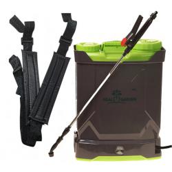 Тип помпа: мембранна Работно налягане: 0,2 - 0,4 MPa Батерия: 12V високопроизводителна Капацитет на резервоара: 16 литра Ефективност (една дюза): 1,5 - 1,6 л/мин Капацитет (двойна дюза): 1,8 - 3,0 л/мин Нетно тегло: 5 кг Време за пълно зареждане: приблизително 6-8 часа Работно време с едно зареждане: до около 4 часа (в зависимост от използваната дюза и интензивността)
