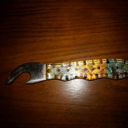 Отварачка от България около 1975 г. Образец на социалистическото промишлено изкуство. Размери 106*18*12 мм..Материал на отварачката неръждаема стомана. материал на чирените плексиглас.