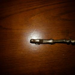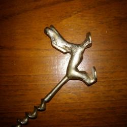 Отварачка - тирбушон " куче ". Произход СССР 1971 г. Габаритни размери 75*55*7 мм..Материал неизвестен цветен метал. Отварачката е използвана.