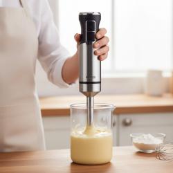Продукт: Пасатор Muhler MB-77S Основен проблем, който решава: бавно пасиране, загряване на уреда, пръски и недостатъчна мощност при твърди продукти Решение: мощен 1000W мотор, метално тяло и 4-лъчев нож за равномерно, бързо и чисто пасиране 2 степени на работа (нормална и ТУРБО) Плавна настройка на скоростта Пасираща приставка от неръждаема стомана Допълнителни предимства: устойчива конструкция, подходящ за горещи смеси, лесно почистване Материали: метално тяло; нож от неръждаема стомана Мотор: 1000W, висок въртящ момент Захранване: 220–240V / 50–60Hz Н о ж: 4-лъчев неръждаем Сертификация: CE Важно: Снимката е с информативен характер и м