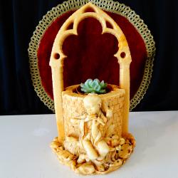 Стар авторски пепелник на желанията, статуетка, ръчно изработен от смола. Красива композиция на момче, което свири на флейта пред Кладенец на желанията. Има подпис на автора. Може да бъде ефектно аранжиран с любим кактус или сукулент. Височина 23.5 см., диаметър 14 см., тегло 1172 гр.