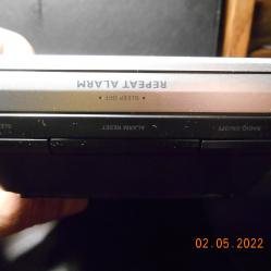 РАДИО ЧАСОВНИКА РАБОТИ БЕЗПРОБЛЕМНО ! Дръскотини по предния огледален панел и затова цената е такава Има 2 аларми и всичко работи без забележки Отзад има кабел със стерео жак да се слуша музика от телефона през изхода на слушалките Размер 14/14см