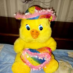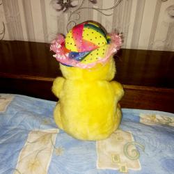 Плюшена играчка Пиле - състояние добро, забележка отпред по тялото е леко скъсано, дължина 32см.