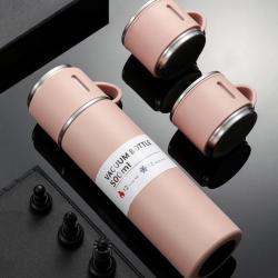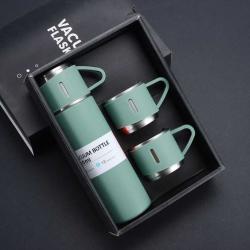 Подаръчен комплект термос с 3 чаши, зелен, розов, сив