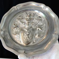 Старинен поднос, плато, табла, майсторска ръчна изработка от як високо качествен бронз. Декориран с релефно гравирани, приказно красиви цветя и орнаменти. Перфектно състояние – като златно огледало. Диаметър 27 см., височина 2 см., тегло 350 гр.