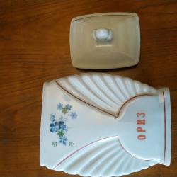 Порцеланов съд за ориз. Произход България около 1970 г. Габаритни размери заедно с капака 110*70*180 мм.