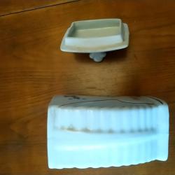 Порцеланов съд за пипер. Произход България около 1970 г. Габаритни размери заедно с капака 110*70*180 мм..