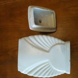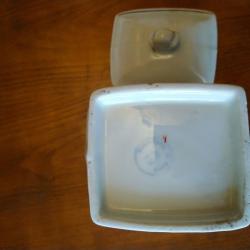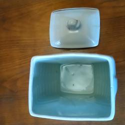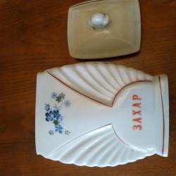 Порцеланов съд за захар. Произход България около 1970 г. Габаритни размери заедно с капака 110*70*180 мм..