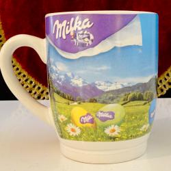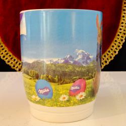 Стара порцеланова чаша Milka, великденска серия - Milka Osterbecher Edition 13, рисувана със заека Питър. Височина 10.5 см., диаметър 8 см., вместимост 300 мл.