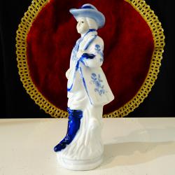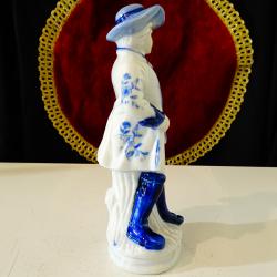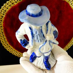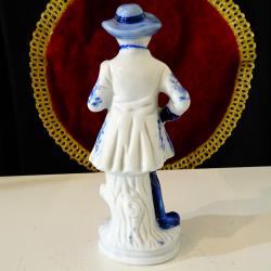 Стара порцеланова статуетка, фигура на придворен музикант Лютнист, синьо-бял порцелан, ръчно рисуван с кобалт. Има запазен златен етикет Royal Dragon – Drache Design-Handgemalt. Височина 17 см., диаметър 7 см. Перфектна.