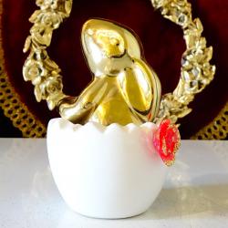 Порцеланова фигура Заек в яйчена черупка, позлата.