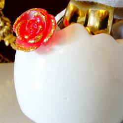Стара порцеланова фигура Зайче, притаено в яйчена черупка с червена роза. Красиво изваяна с дебела позлата. Височина 10 см., диаметър 6 см.