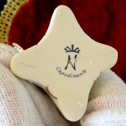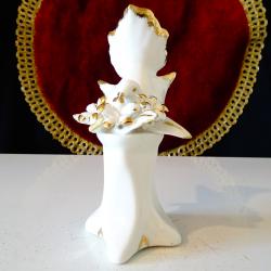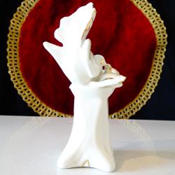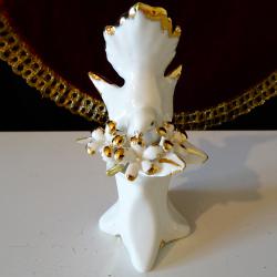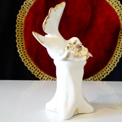 Стара порцеланова статуетка, фигура бял Гълъб сред цветя, декорирана с много 24 карата злато. Маркирана с печат на световно известната италианска фабрика Capodimonte. Височина 12.5 см., дължина 8 см., ширина 7 см. Тегло 114 гр.