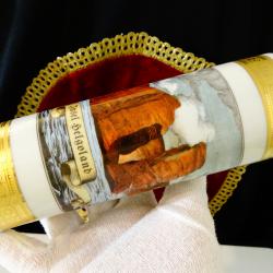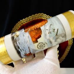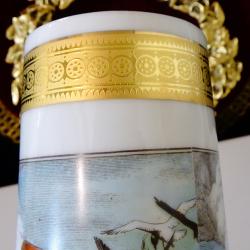 Стара немска порцеланова ваза, ръчно рисувана с красив пейзаж от остров Хелголанд, Кораб и релефен слитък от 24 карата злато. Остров Хелголанд има интересна история – бил е свърталище на пирати, там е избухнал най-големия неядрен взрив в историята на човечеството, посещаван от поети, писатели, художници, композитори, като Ференц Лист, Кафка, Хайнрих Хайне. В момента принадлежи на Германия, но не е част от Европейския съюз и дори има собствена валута. Височина 18 см., диаметър 6.5 см., перфектна.