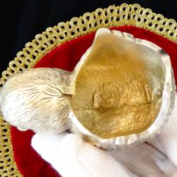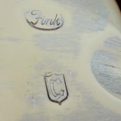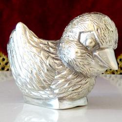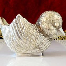 Фигура Птица, Врабче, майсторска ръчна изработка от свръх масивен бронз, дебело посребрена с висока проба сребро. Маркирана с инициалите на H. R.W. Fink Germany, основана през 1984 г., специализирана във висококачествени ръчно изработени изделия за дома. Прецизно изваяната фигура, може да служи освен за декорация и като ефектна бижутерка, коктиера, поставка за клечки за зъби и др. Височина 5.5 см., дължина 9 см., ширина 5.5 см. Тегло 240 гр.
