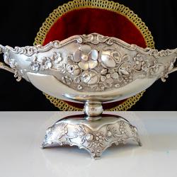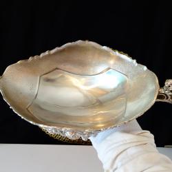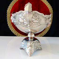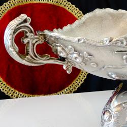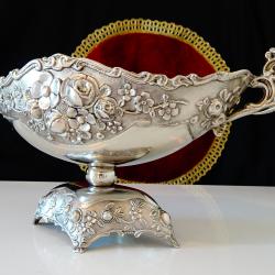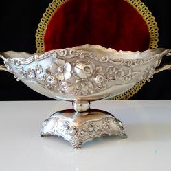Посребрена жардениера, фруктиера, гондола, рози, барок, 1.1 кг.