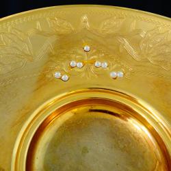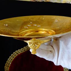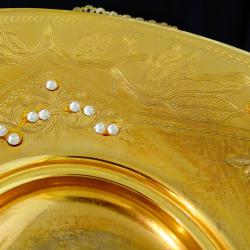 Позлатена фруктиера 24k Gold, етикет, Art Nouveau.