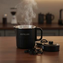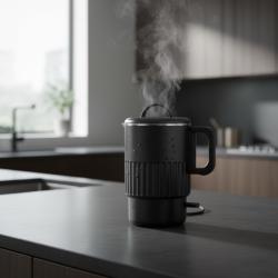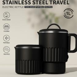 Продукт: Преносим електрически чайник от неръждаема стомана; Модел: ZDB-06; Цвят: Черен; Капацитет: 1.0 L (1000 ml); Мощност: 600 W; Напрежение: 220 V; Материали: SUS304 (304) неръждаема стомана – вътрешност и капак; PP корпус и дръжка; Маркировки: MAX/MIN от вътрешната страна; Управление: бутон за кипване и поддържане на топло; Съхранение: прибиращ се кабел, база, която се поставя в кухото тяло за компактно пренасяне; Размери: 165×130 mm (основа), 194×165×130 mm (тяло); Комплектът включва: чайник, капак, захранваща база, стойка за яйца.
