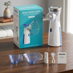 Технически характеристики на Преносим ултразвуков инхалатор – тих, компактен и подходящ за деца и възрастни Ключовите технически параметри гарантират качество и ефективност при инхалация: Технология: ултразвукова мрежа (mesh) за фина атомизация Размер на частиците: приблизително 3,7 nm Ниво на шум: под 36 dB Режими: висок и нисък поток на атомизация Захранване: USB кабел или 2 x AA батерии (батериите не са включени) Функция: автоматично почистване на микрорешетката Тегло и размери: 300 g; 10.5 x 4.5 x 4.5 cm Подходящ за: деца и възрастни, семейна употреба, пътуване