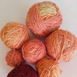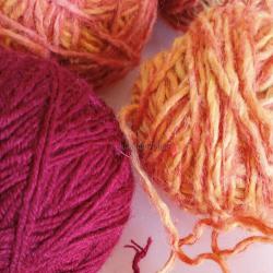 Цената за всичко. Прежда от оранжев цвятът меланж не е вълна, но изглежда като вълна. Прежда с бордов цвятът е синтетика.